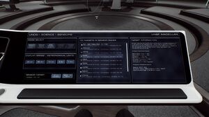 The Sensors Station is the primary scientific station on the Bridge. Manned by a member of the Science department, they are used to display stellar perform surveys and assist in ship navigation. The display of a sensors station can be projected onto the Holo-Display.